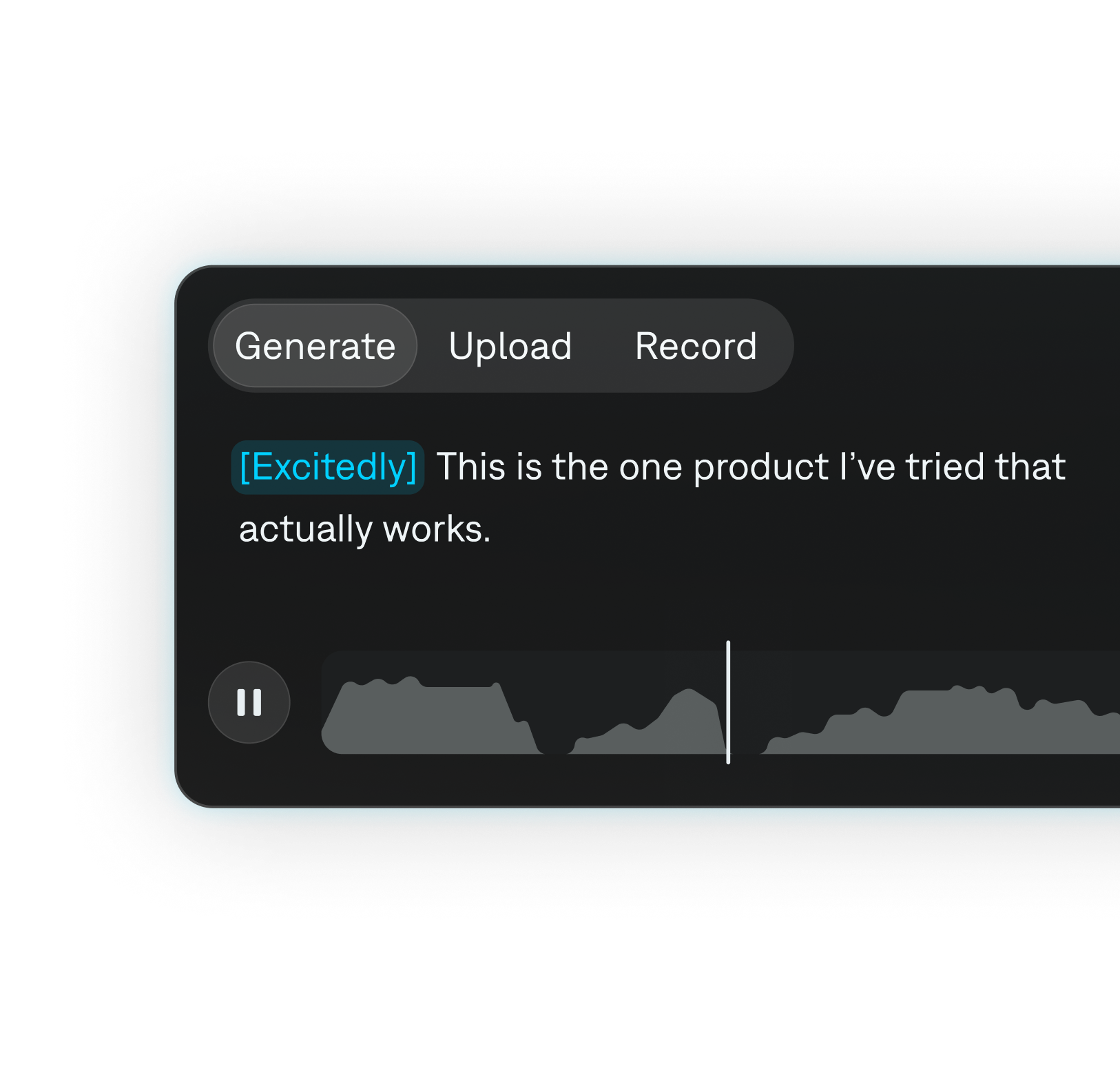 Upload existing audio, record live or turn a script into a new audio recording. You can clone your own voice or choose from a library of voice actors.